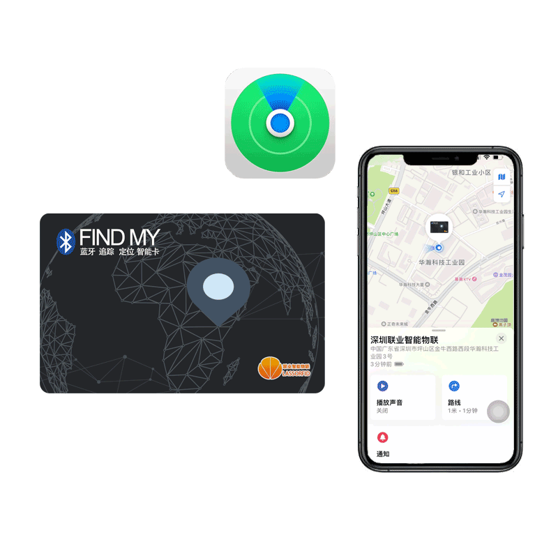 藍(lán)牙追蹤定位卡可以幫助你輕松追蹤定位各種物品位置,用戶只需把藍(lán)牙追蹤定位卡放在錢包內(nèi)或者同需要定位物品捆綁起來,在打開APPLE手機(jī)“查找”(FIND MY)APP,用戶可以查找到物品在哪里。藍(lán)牙追蹤定位卡自帶蜂鳴器和LED燈效果,在復(fù)雜環(huán)境里面,用戶根據(jù)藍(lán)牙追蹤定位卡發(fā)出來警報(bào)器,就可以找到物品所在之處