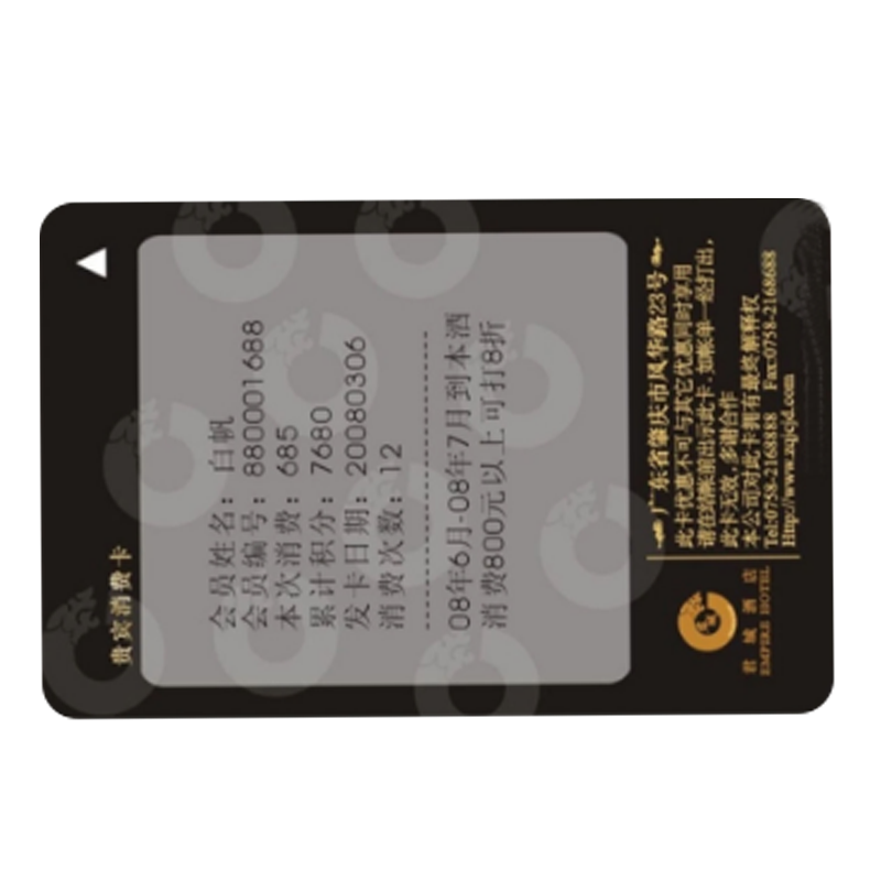尺寸:85.5*54mm*0.22~0.28mm 打印區(qū)域:40*60mm? 刷寫次數(shù)∶500次? 字體顏色∶白色? 適用機(jī)型:榮大、star、natec? 特點(diǎn):時(shí)尚纖薄、炫銀奪目、女性專屬 應(yīng)用領(lǐng)域:多用于美容美發(fā)、美甲、服裝、SPA等? 產(chǎn)唱部?場(chǎng)所、作為小額儲(chǔ)值、優(yōu)惠、積分、記IC 儲(chǔ)值卡次等會(huì)員使用。 |