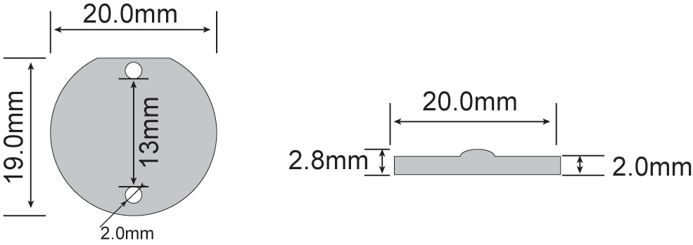 | 尺寸: | 直徑20mm, (孔: 直徑2mmx2) |