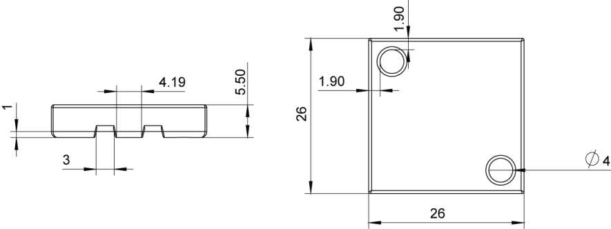 | 尺寸: | 26x26mm, (孔: 直徑4mmx2) |
