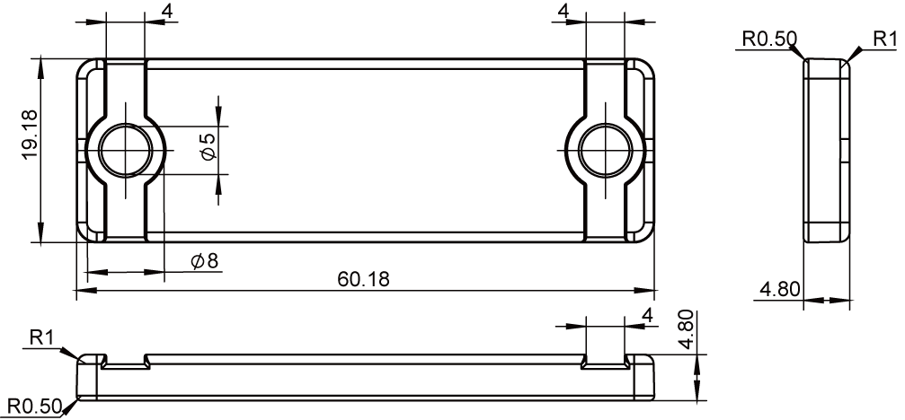 | 尺寸: | 60x19mm, (孔: 直徑5mmx2) |
