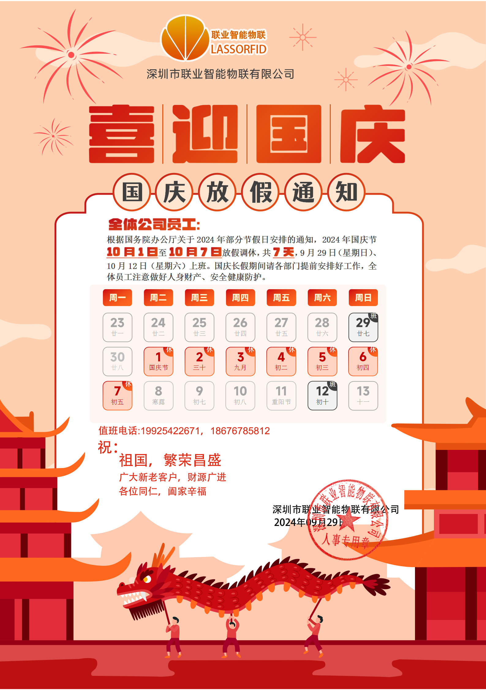 國慶佳節(jié)即將來臨之際,深圳市聯(lián)業(yè)智能物聯(lián)有限公司謹向偉大的祖國致以最誠摯的祝福,祈愿祖國母親繁榮昌盛,國泰民安,蒸蒸日上。