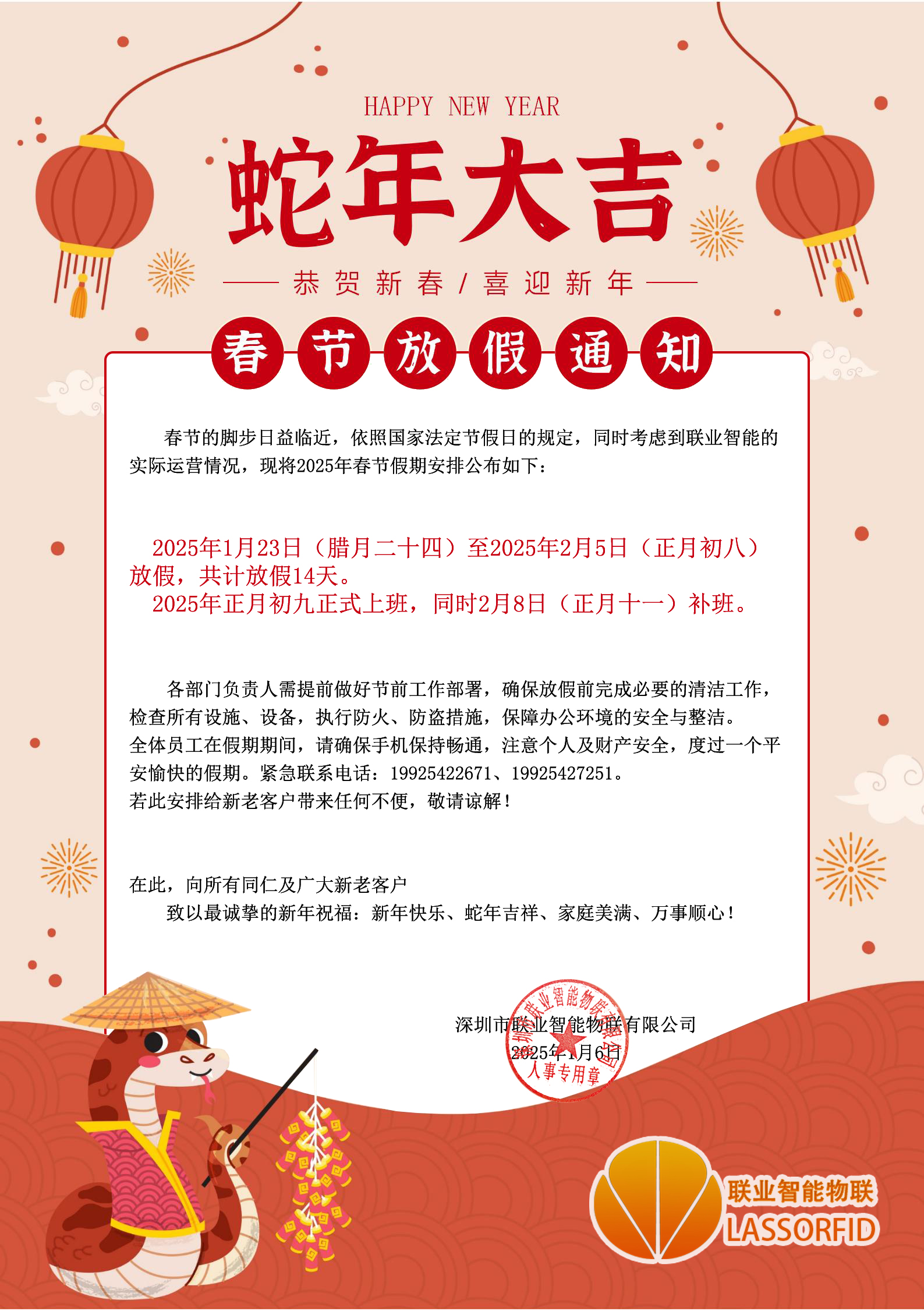 2025年聯(lián)業(yè)智能春節(jié)放假通知(金蛇賀春)