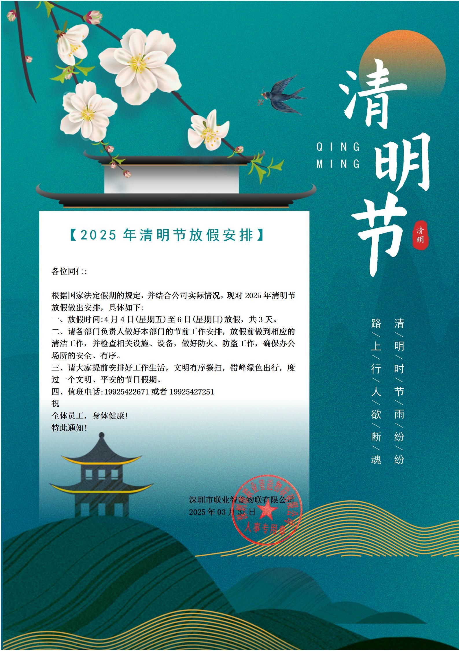 聯(lián)業(yè)智能 2025年清明節(jié)放假通知