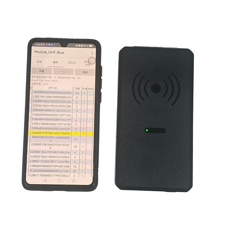 藍(lán)牙讀卡器是一款高性能的便攜式超高頻RFID讀寫器、內(nèi)置3000mAh電池,通過藍(lán)牙連接各種安卓終端,實(shí)現(xiàn)標(biāo)簽閱讀和數(shù)據(jù)交互。